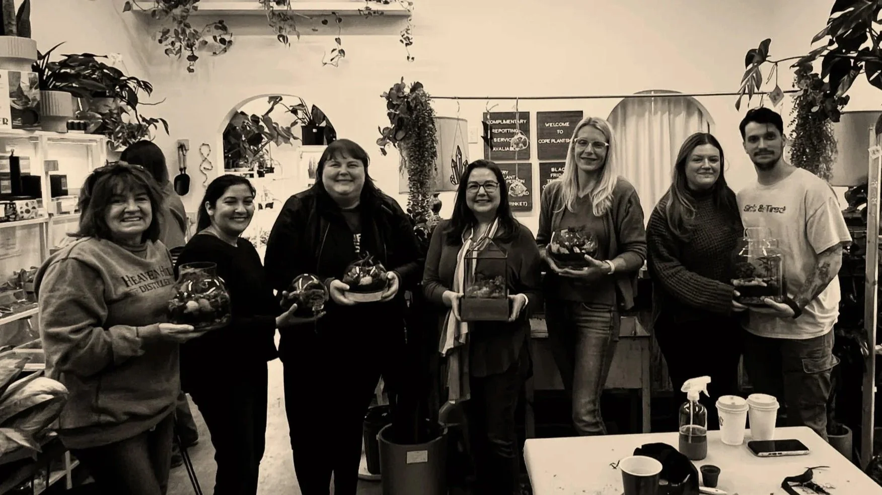 Its easy to book a private Terrarium Creation Workshop: Simply gather at least five participants and follow the link or email hello@YouNeedPlants.com . Workshops are $35 per person, excluding the closed glass vessel. You are welcome to bring your own container or purchase one from the shoppe. Prices start at $18.